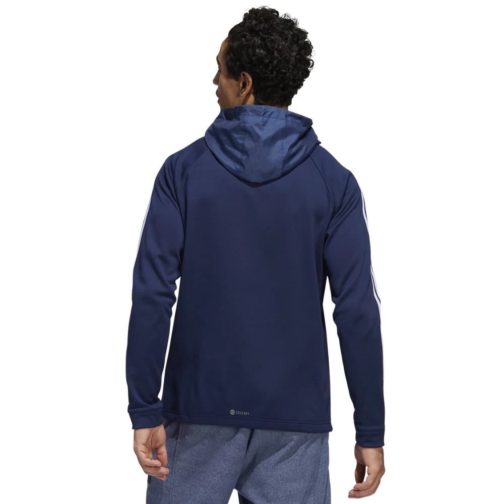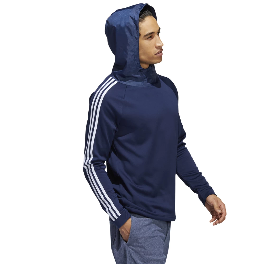 A warm fleece golf hoodie made with recycled materials. When the day starts off cool, this adidas golf hoodie ensures you can get out there and play in comfort. The clean, casual style lends it a relaxed feel that plays well off the course too. COLD.RDY traps heat to keep you warm without feeling bulky. It’s cut for a full range of motion that lets you move without restriction on the course and beyond.
