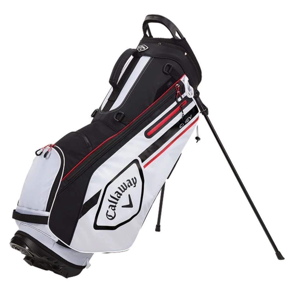 A sleek and versatile midsized stand bag, the Chev features a bold cosmetic, ample storage and 4-way club organization at a great value.