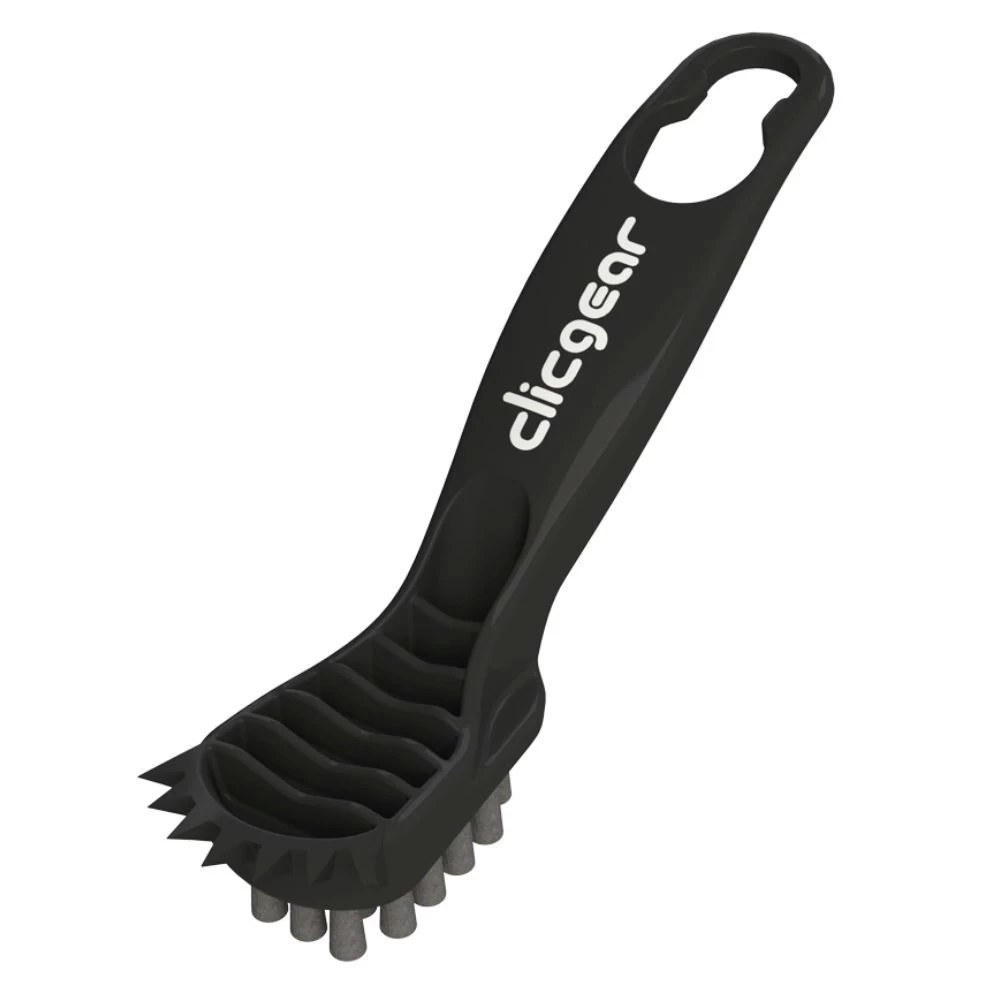 Designed to fit on the Clicgear accessory tab, the Club Brush provides easy access to a tool with multiple uses and functions. Strong bristles for cleaning grooves and shoes. Also several points for getting just about any groove clean.