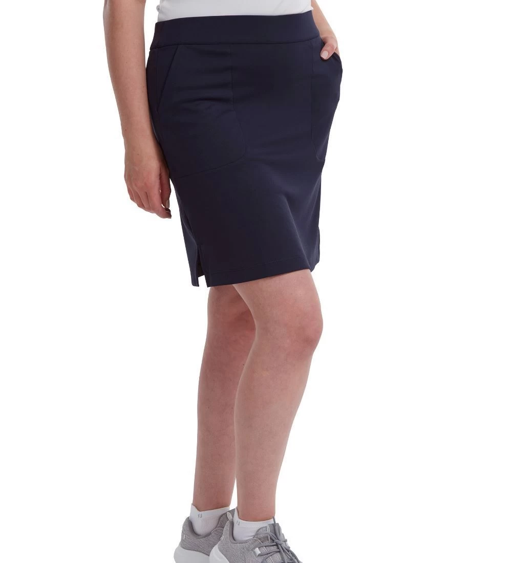 Lightweight Micro Interlock fabric. Solid colour throughout, and 2″ longer than regular length skort. Two hand pockets for additional storage. Stretch waistband and integrated inner mesh knit skort. Self colour FJ logo above front left hem. Moisture wicking technology draws moisture away from the body. Easy care fabric to minimise wrinkling. UV Protection