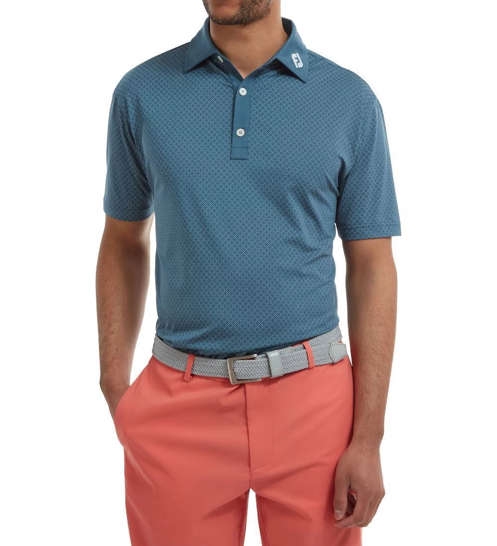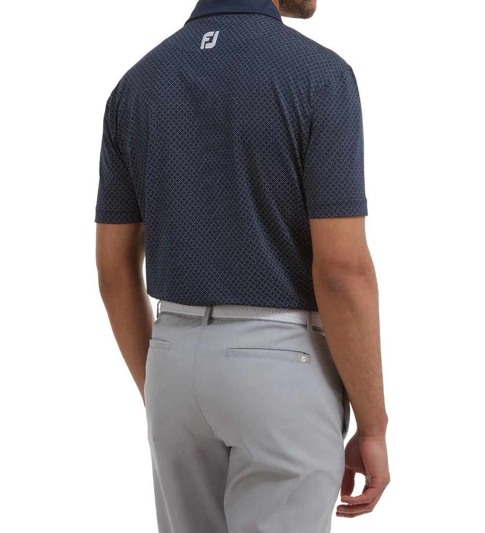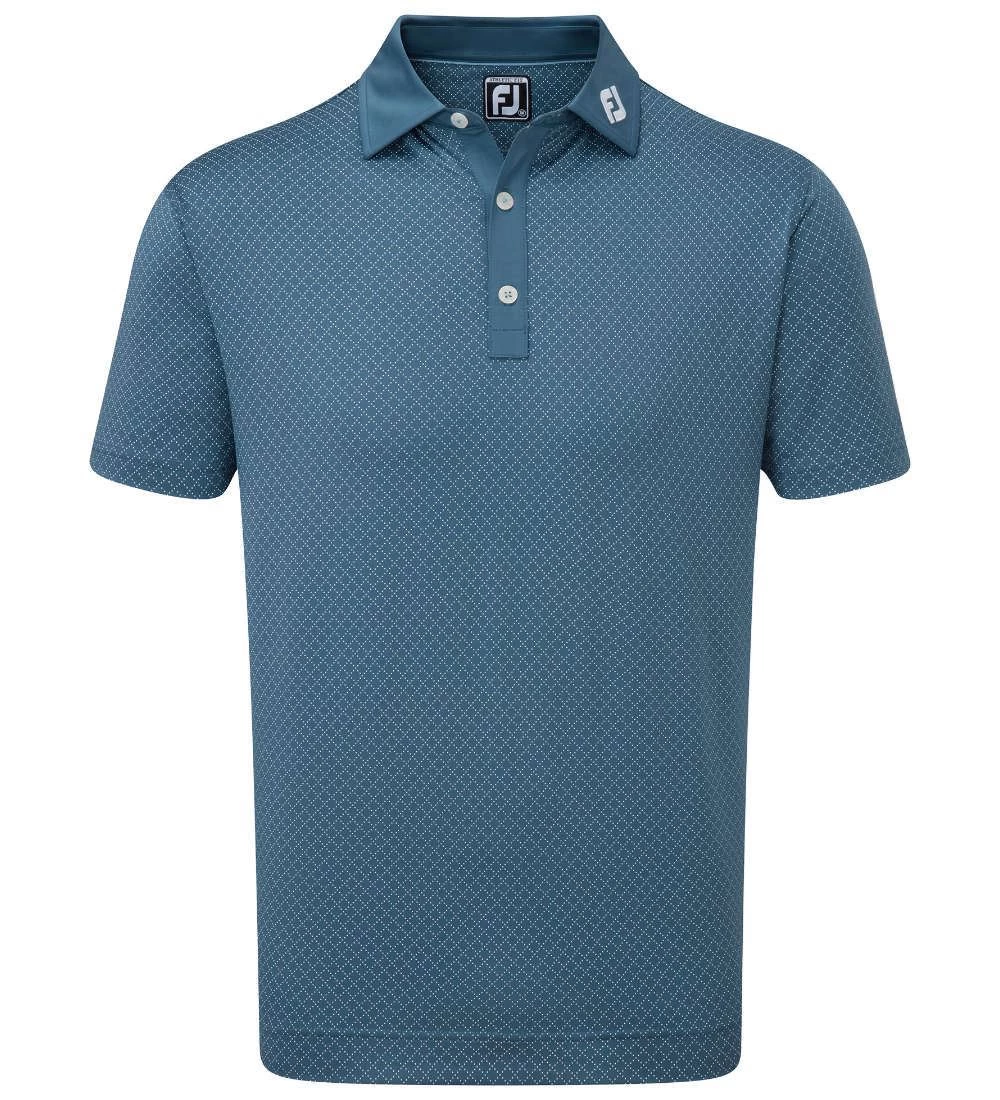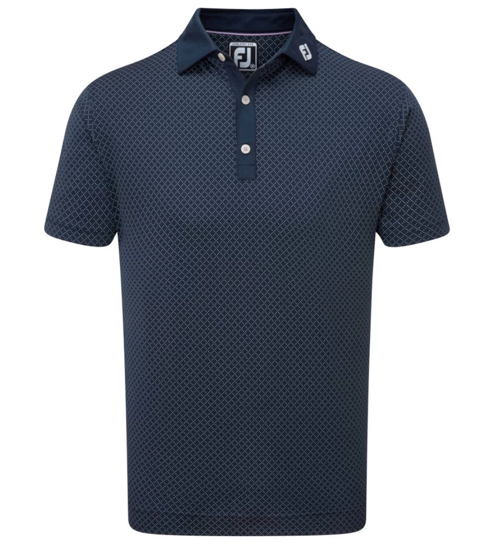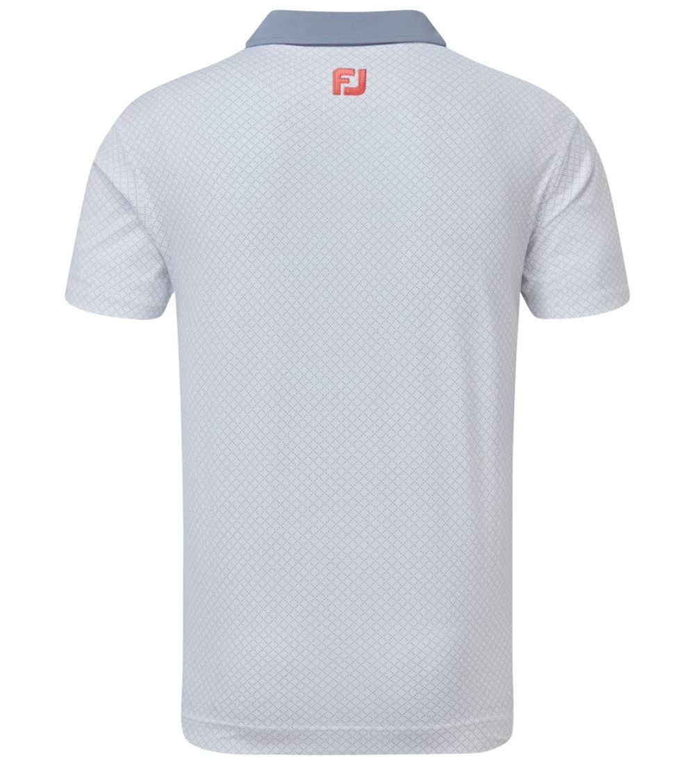 FJ ProDry Lightweight Stretch Lisle fabric. All over geometric dot print pattern. Solid colour collar and set on placket. Contrast collar and rear yoke FJ logo’s, with co-ordinated neck piping and button thread. Moisture wicking technology draws moisture away from the body. Easy care fabric to minimise wrinkling. SPF 30 UV protection