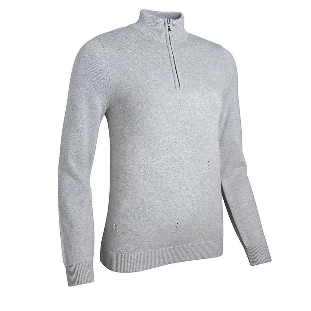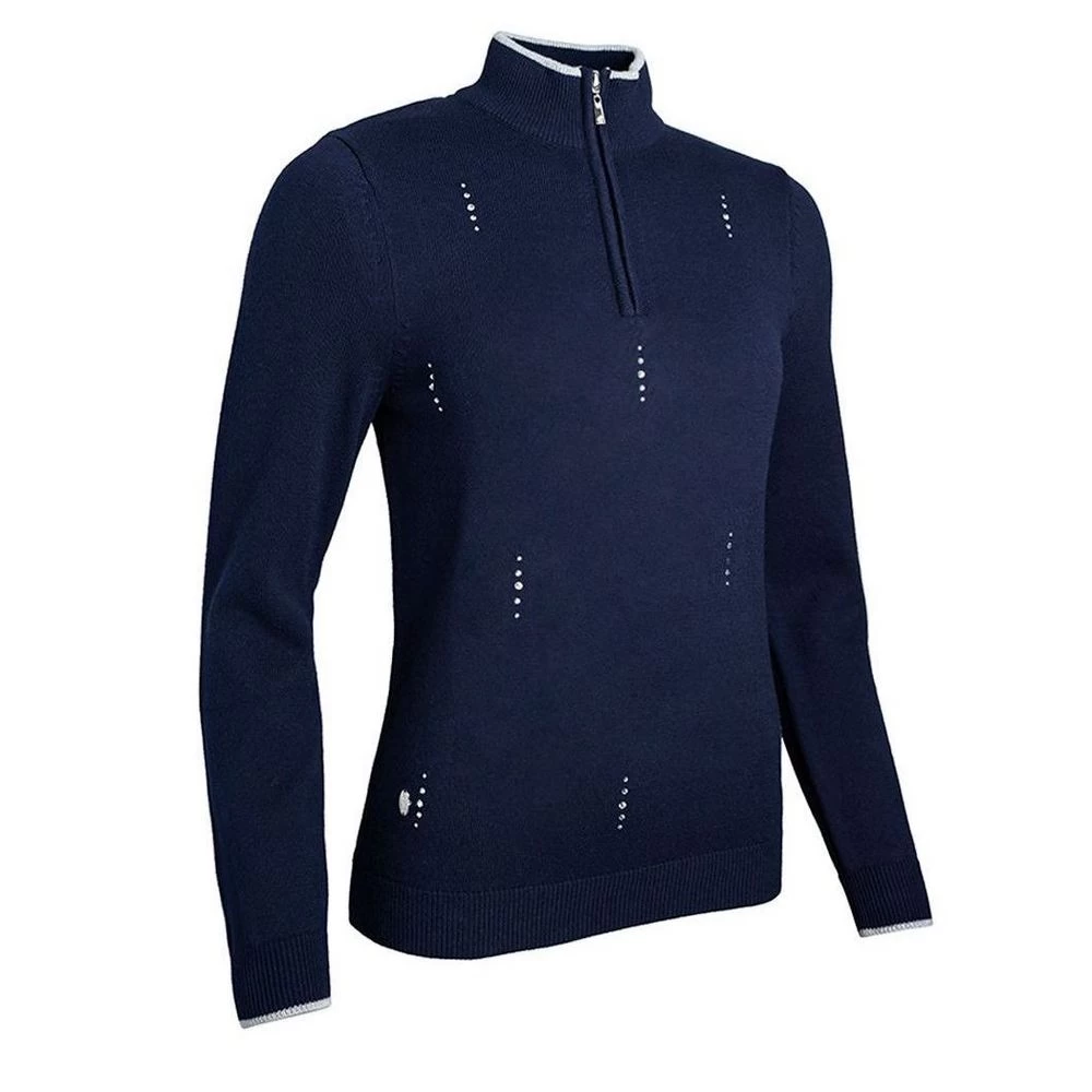 We think the subtle details are really what make this sweater particularly stylish, like diamante rhinestones and tipped collar & cuffs. The ‘touch of cashmere’ finish to this sweater makes it feel noticeably softer and more comfortable. Thanks to the subtle styling, you can enjoy that cashmere feeling on or off the golf course.