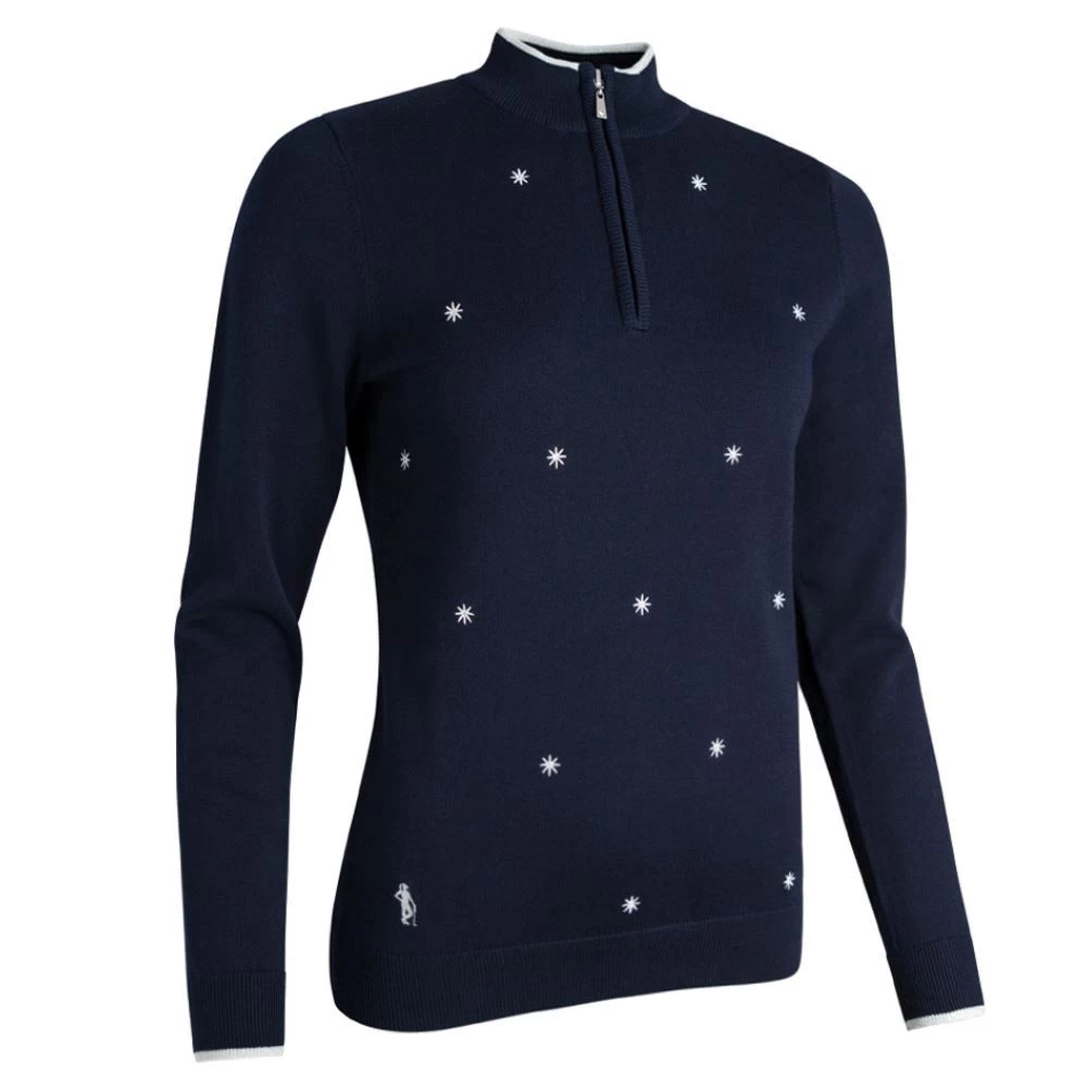 The Glenmuir Women’s Paige Pullover is a beautiful zip neck opening sweater with embroidered flowers with a silver lurex on the front panel. Made from combed cotton, the Paige sweater is lightweight and breathable, and perfect for those occasions when you need a little extra.