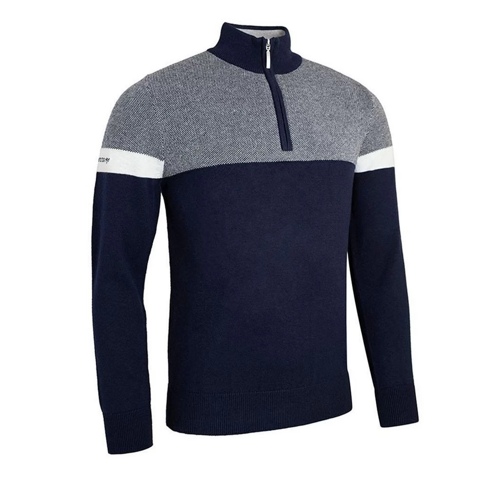 The Glenmuir Lawrie Golf Sweater, with a touch of cashmere will take you from the playing 18 holes to the clubhouse in style. Made with the finest cashmere and cotton yarn giving a luxuriously soft touch. The fabric finish provides protection against water, soil, and stains along with active smart fiber thermoregulate to climatic changes to release excess heat for breathability. The perfect golf sweater.