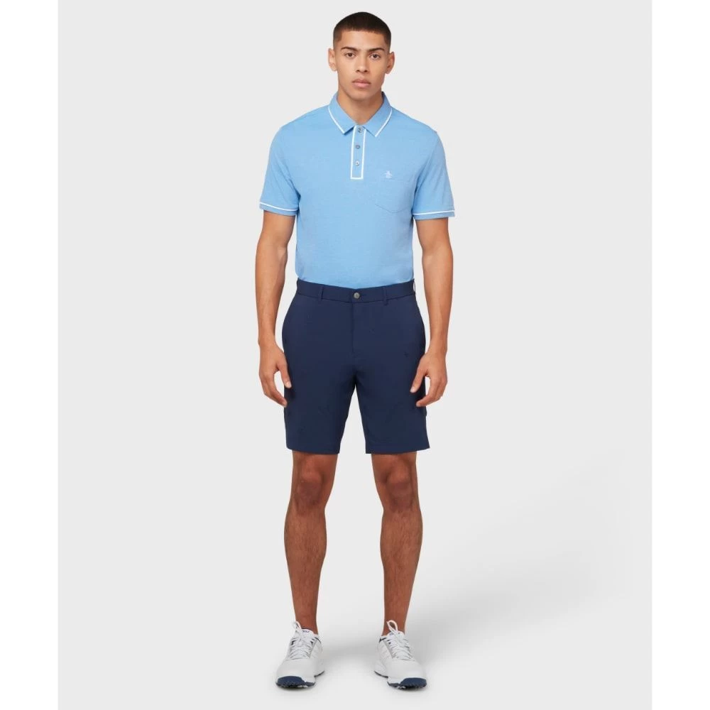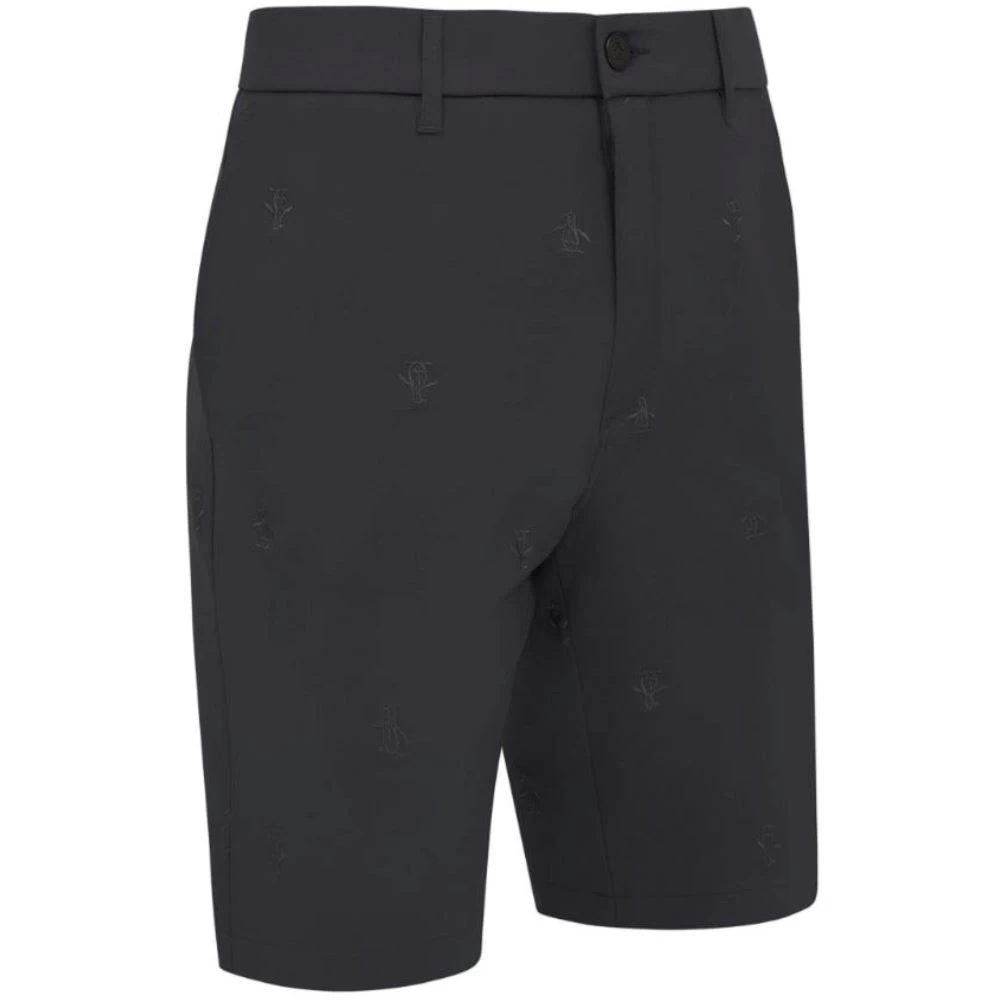The Allover Pete Embroidered shorts are brand new this season from Original Penguin. Forming part of their golf collection, these slim-fit shorts are great for warmer weather. They are made from a stretch fabrication for wearing comfort with front and back pockets for small-item storage and silicone details inside the waistband to help keep your shirt in place. They have the signature Penguin logo embroidered all over in a tonal colour.