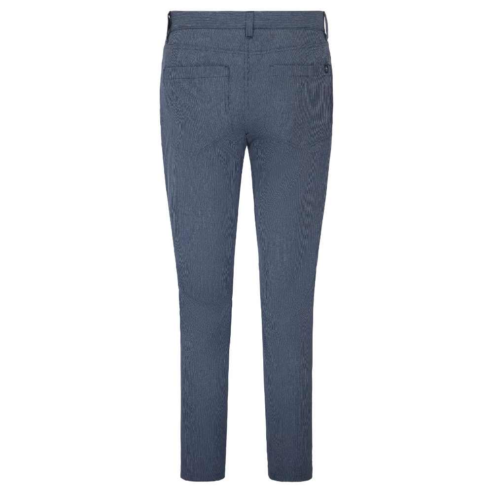 Crossover vertical stripe 6 pocket pant. Left back pocket bug label. Pete printed pockets bags. 5 pocket silhouette plus additional zip pocket in right back pocket. 4-way stretch. Covered elastic waistband with silicon printed gripper. 92% polyester, 8% Elastane