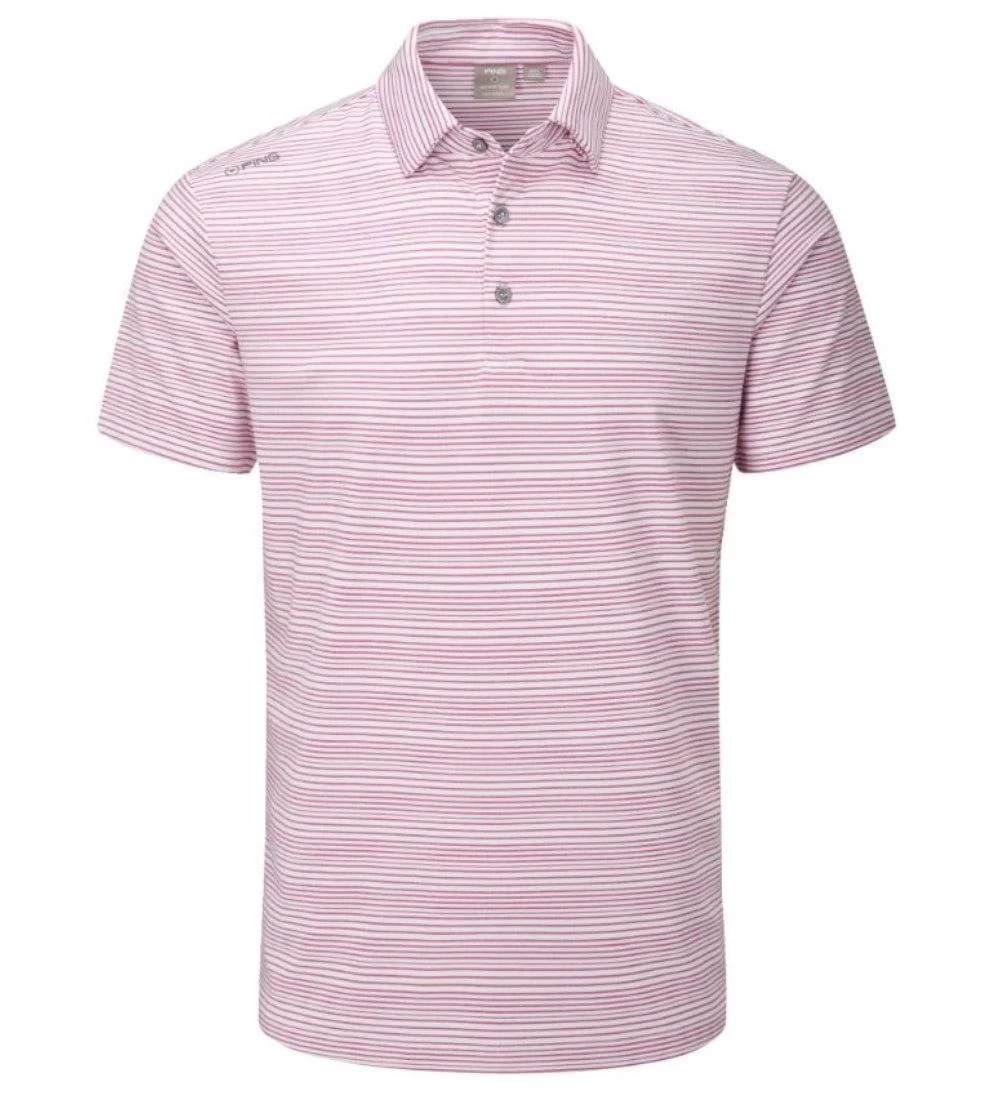 The Ping Alexander Golf Polo Shirt features SensorCool® technology to draw moisture away from your body so you feel dry and comfortable in the heat of the day. The stretch fabric allows you to move freely through your game and it is also quick drying and crease-resistant. Styled with a classic three-button placket and an all-over narrow stripe detail, the Alexander is perfect for the summer months of golf.